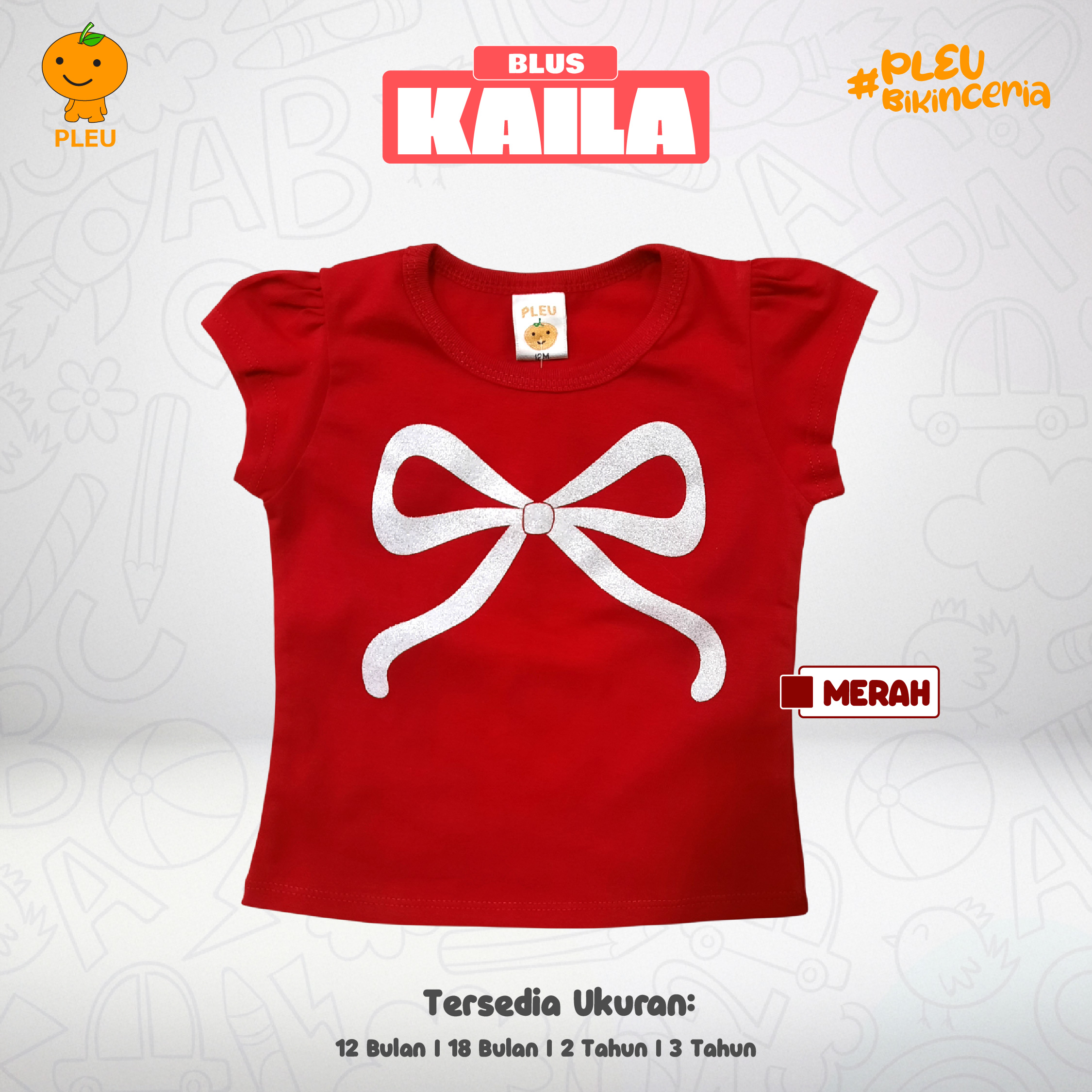 Blus Kaila hadir dalam warna Merah dan Pink, ukuran 1-3 tahun, dengan gaya ceria dan nyaman untuk si kecil. Motif utama adalah pita putih berkilau besar di bagian depan, memberikan tampilan manis dan glam tanpa berlebihan. Potongan lengan pendek sedikit puff dan leher bulat membuatnya ringan dipakai sehari-hari, cocok dipadukan dengan jeans, rok, atau celana favorit. Bahan katun berkualitas yang lembut di kulit, bernapas, mudah dirawat, dan tetap nyaman sepanjang hari. Semua material telah bersertifikat SNI, menjamin keamanan kain, kekuatan jahitan, serta kenyamanan maksimal untuk aktivitas bermain dan belajar.