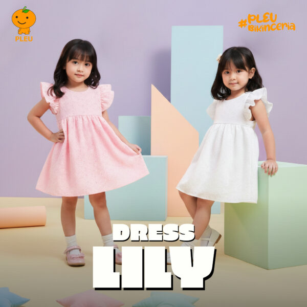Dress Lily hadir dalam dua warna cantik: Putih dan Pink, ukuran 6 bulan hingga 3 tahun. Desainnya manis dengan atasan berbahan renda broderie anglaise bernuansa motif bunga halus, lengan pendek puff, dan rok A-line yang lebar agar gerak si kecil bebas. Keunikan utama terletak pada detail renda halus di tepi dada serta pola bordir halus yang memberikan nuansa elegan tanpa kehilangan kenyamanan. Bahan utama terbuat dari katun berkualitas tinggi yang lembut di kulit, adem, mudah dirawat, dan bernapas dengan baik. Semua material telah bersertifikat SNI, menjamin keamanan kain, kekuatan jahitan, serta kenyamanan sepanjang hari untuk bermain, belajar, dan berinteraksi dengan keluarga.
