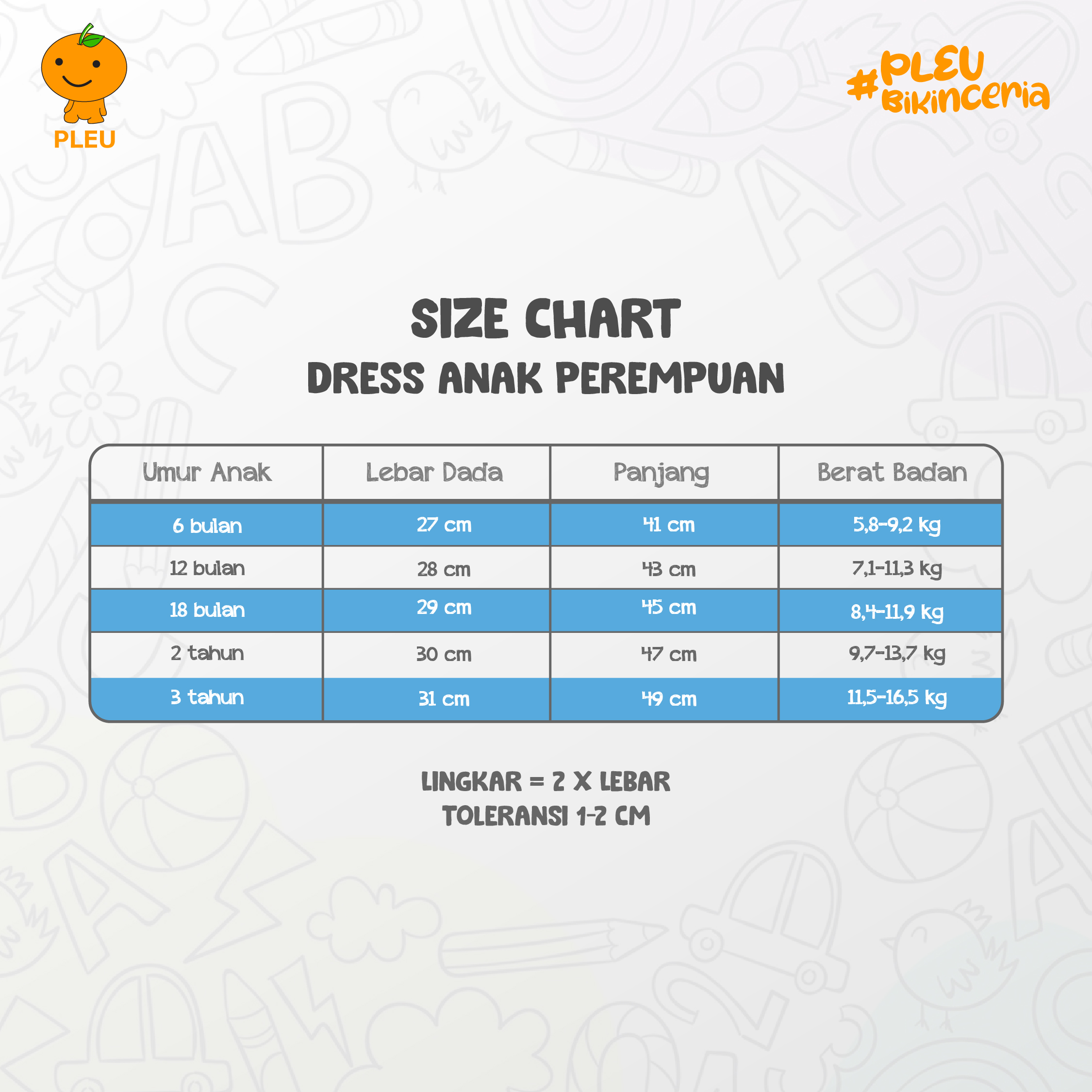– Ukuran : 6 bulan, 12 bulan, 18 bulan, 2 tahun, dan 3 tahun