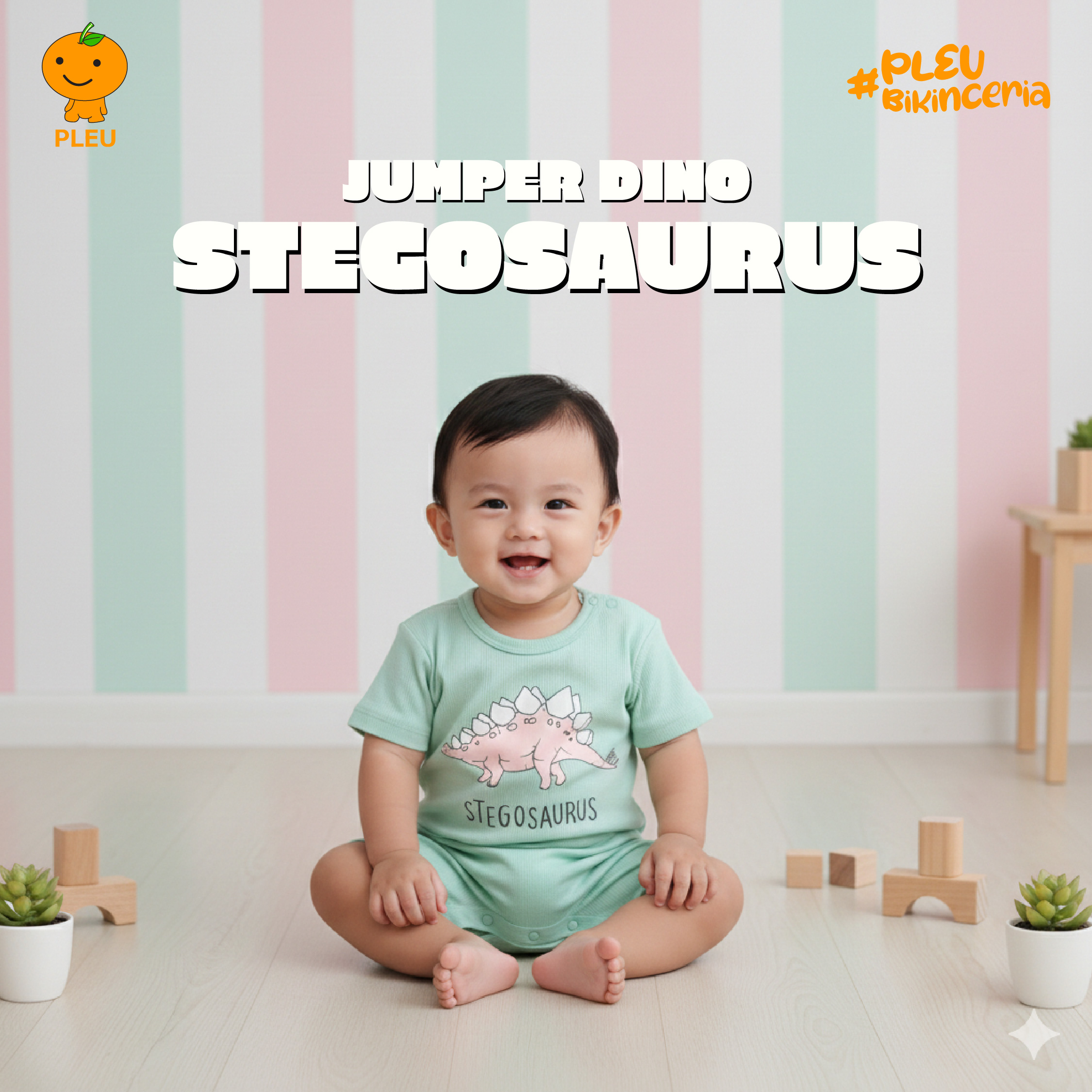 Jumper Dino Stegosaurus warna Hijau hadir untuk bayi ukuran 3-12 bulan. Desain lucu dengan motif Stegosaurus berwarna pink dan piring belakang putih di dada, dipadukan detail kerah abu-abu muda dan kancing depan memudahkan ganti popok. Potongan one-piece simpel memberi kenyamanan maksimal saat tidur maupun bermain. Bahan lembut, adem, dan aman untuk kulit sensitif bayi, serta mudah dirawat. Semua material telah bersertifikat SNI, menjamin keamanan kain, kekuatan jahitan, dan kenyamanan sepanjang hari.