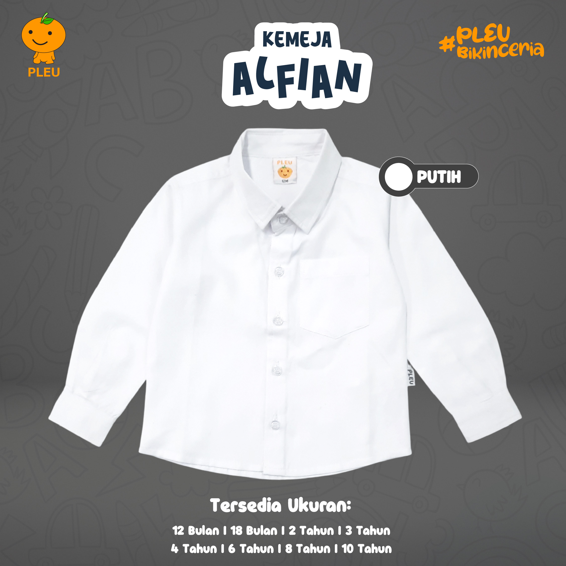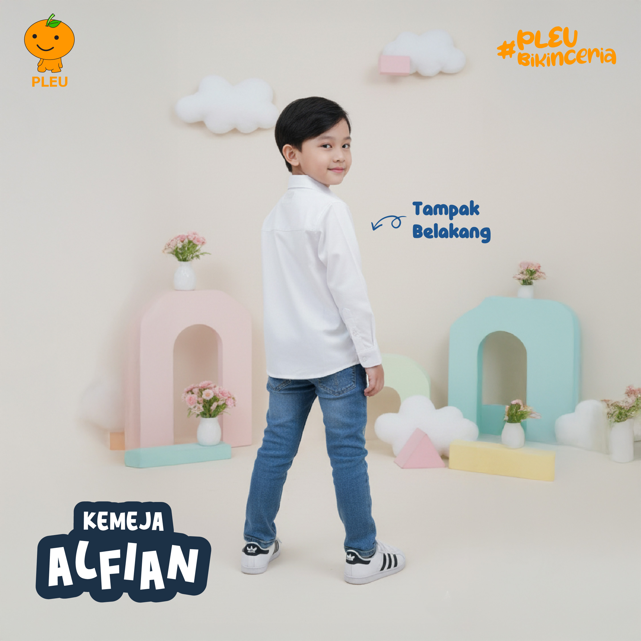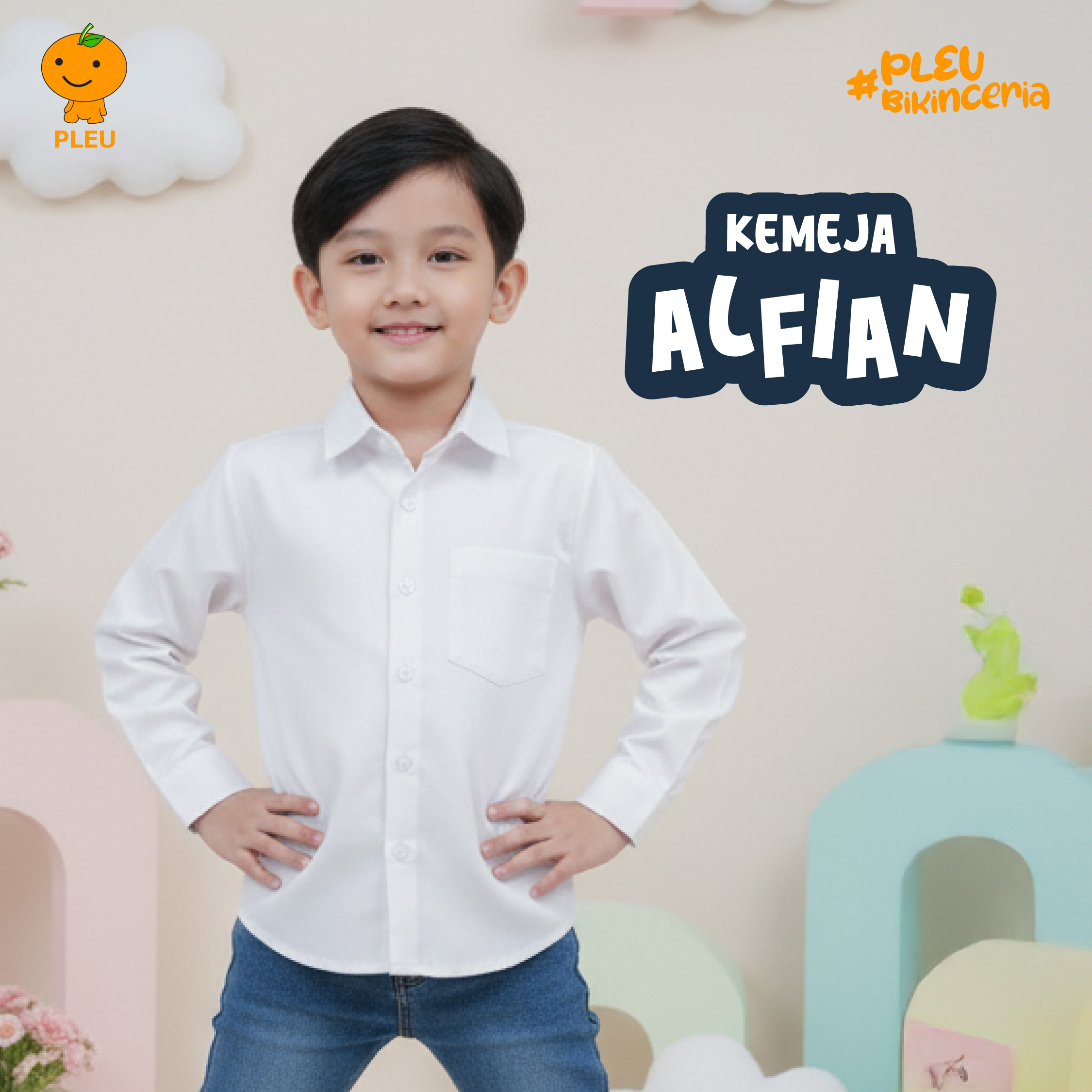 Kemeja Alfian untuk usia 12 bulan–10 tahun adalah kemeja putih lengan panjang bergaya klasik yang mudah dipadupadankan untuk acara formal maupun kasual—dilengkapi kerah rapi, kantong dada praktis, dan kancing depan untuk pemakaian cepat. Keunikan: potongan yang pas anak (tidak terlalu ketat) memberi ruang gerak nyaman, manset kancing di pergelangan menambah kesan rapi saat dilipat, dan warna putih bersih membuatnya ideal untuk foto keluarga, sekolah, atau acara istimewa. Bahan terasa lembut, ringan, dan sudah bersertifikat SNI, aman untuk kulit sensitif anak, tidak mudah luntur, serta mudah perawatannya—pilihan praktis dan elegan agar si kecil tampil percaya diri setiap hari.