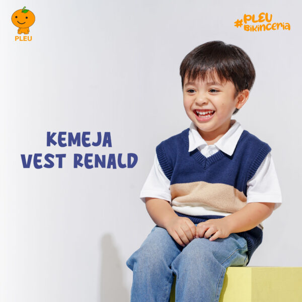 Kemeja Vest Renald merupakan kemeja putih berlengan pendek yang dipadukan dengan vest rajut tanpa lengan bermotif garis-garis, cocok untuk setiap anak laki-laki. Berbahan lembut yang aman dan nyaman untuk kulit Si Kecil. Kemeja ini akan membuat Si Kecil terlihat mempesona.