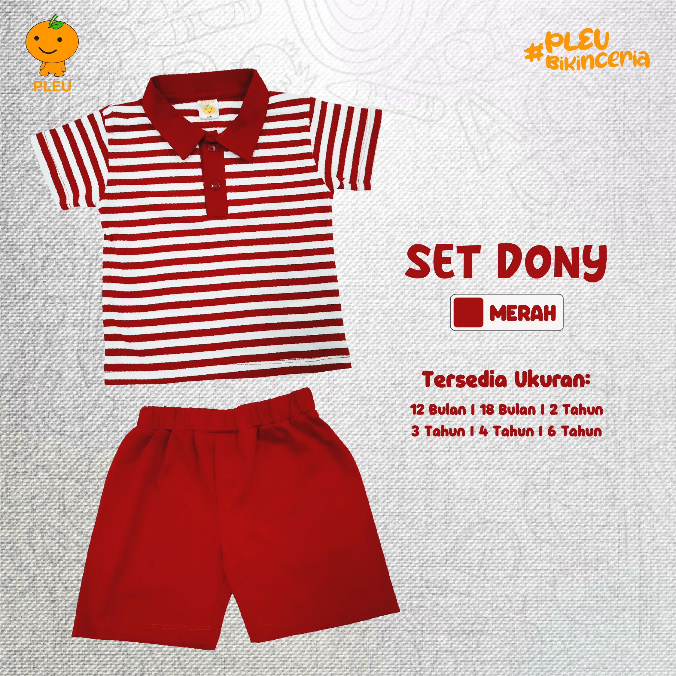 Set Dony yang sporty dan nyaman ini bikin Si Kecil aktif bergerak dengan gaya yang keren. Tersedia dalam warna khaki dan merah yang eye-catching, set ini terdiri dari polo shirt bergaris horizontal dengan kerah dan kancing yang stylish, dipadukan dengan celana pendek elastis yang praktis. Bahannya lembut, adem, dan sudah bersertifikat SNI, aman untuk kulit sensitif anak. Desainnya simpel tapi trendy, cocok dipakai untuk bermain atau acara santai, dengan ukuran lengkap dari 12 bulan sampai 6 tahun. Si kecil pasti suka karena nyaman dipakai seharian.