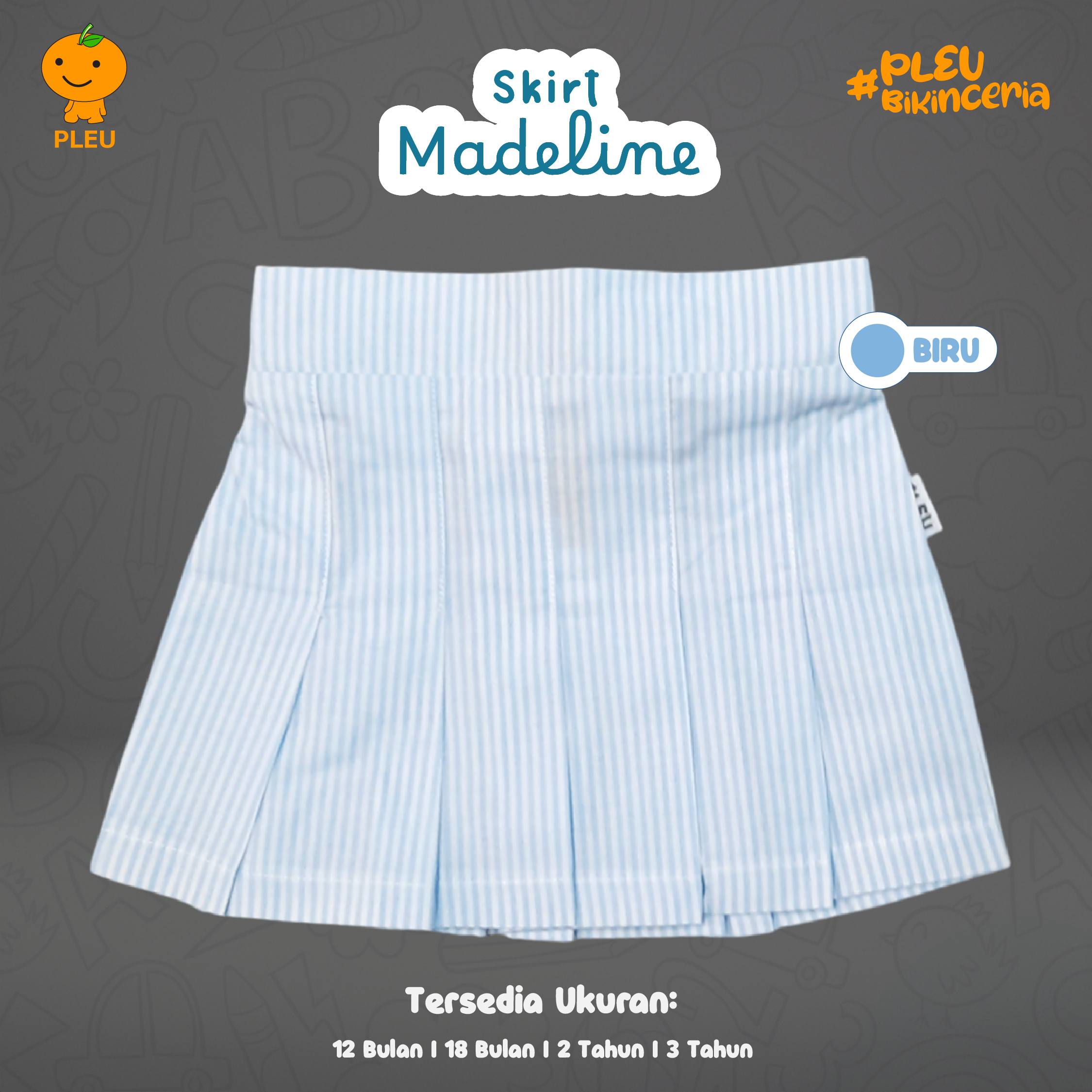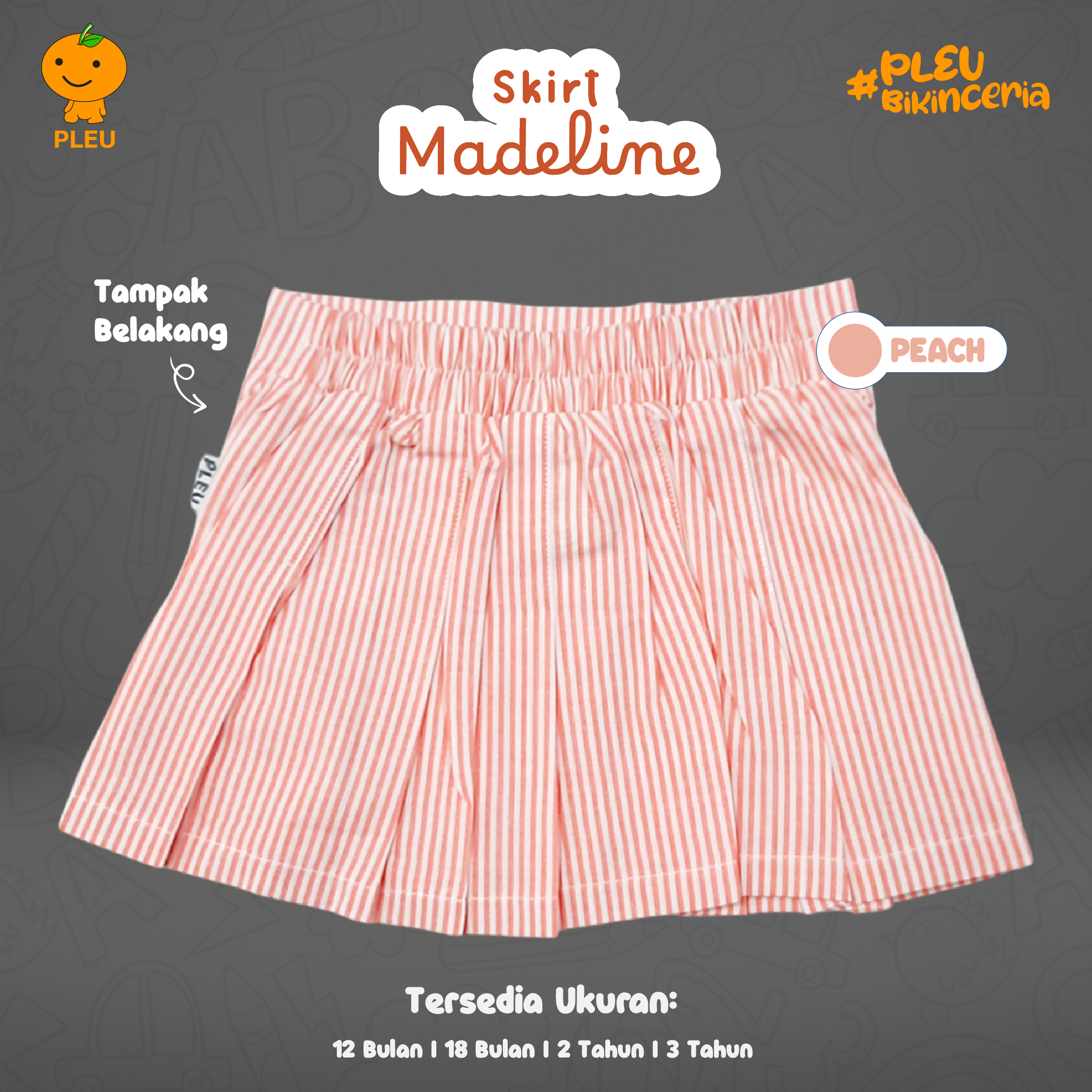 Skirt Madeline (12 bulan–3 tahun) cantik dan playful dalam dua warna—blue stripe lembut dan peach stripe manis—dengan potongan pleated skirt yang memberi volume natural dan gerak lincah saat bermain. Keunikan: detail lipit rapi menambah kesan dressy tanpa mengurangi kenyamanan, karet pinggang elastis mudah dipakai dan pas di tubuh bayi, serta motif garis vertikal tipis pada kedua varian memberikan ilusi ramping dan estetika rapi saat dipadu-padankan. Terbuat dari campuran katun berkualitas yang breathable, lembut, dan mudah dicuci, serta sudah bersertifikat SNI, aman untuk kulit sensitif anak, tidak mudah pudar, dan tahan pakai—pilihan praktis dan stylish untuk sehari-hari maupun acara keluarga.